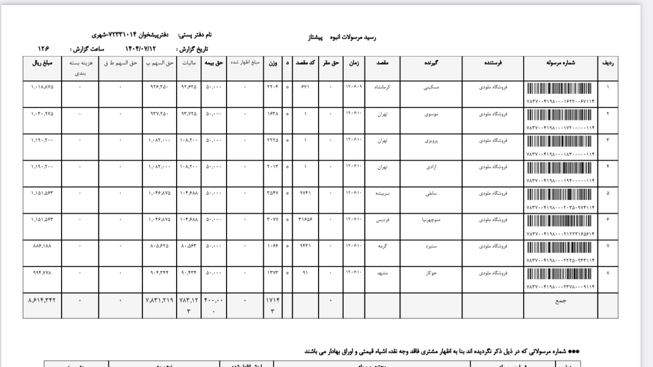 کدهای رهگیری ۱۲ مهر ۴۰۴
