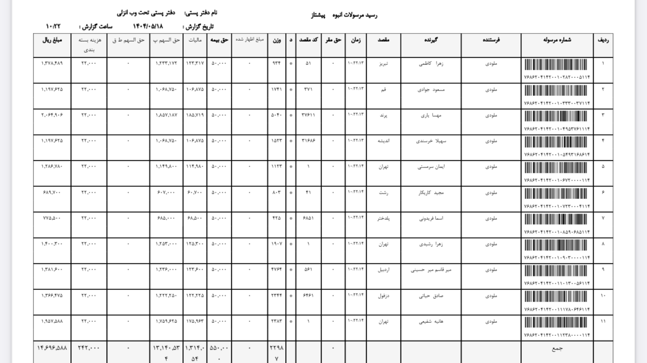 کدهای رهگیری ۱۸ مرداد ۴۰۴