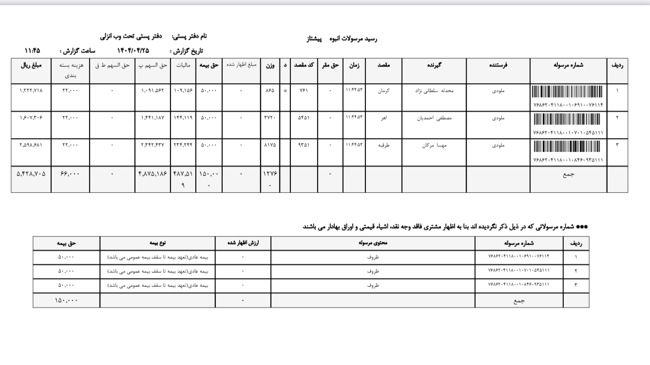 کدهای رهگیری ۲۵ تیر ۴۰۴