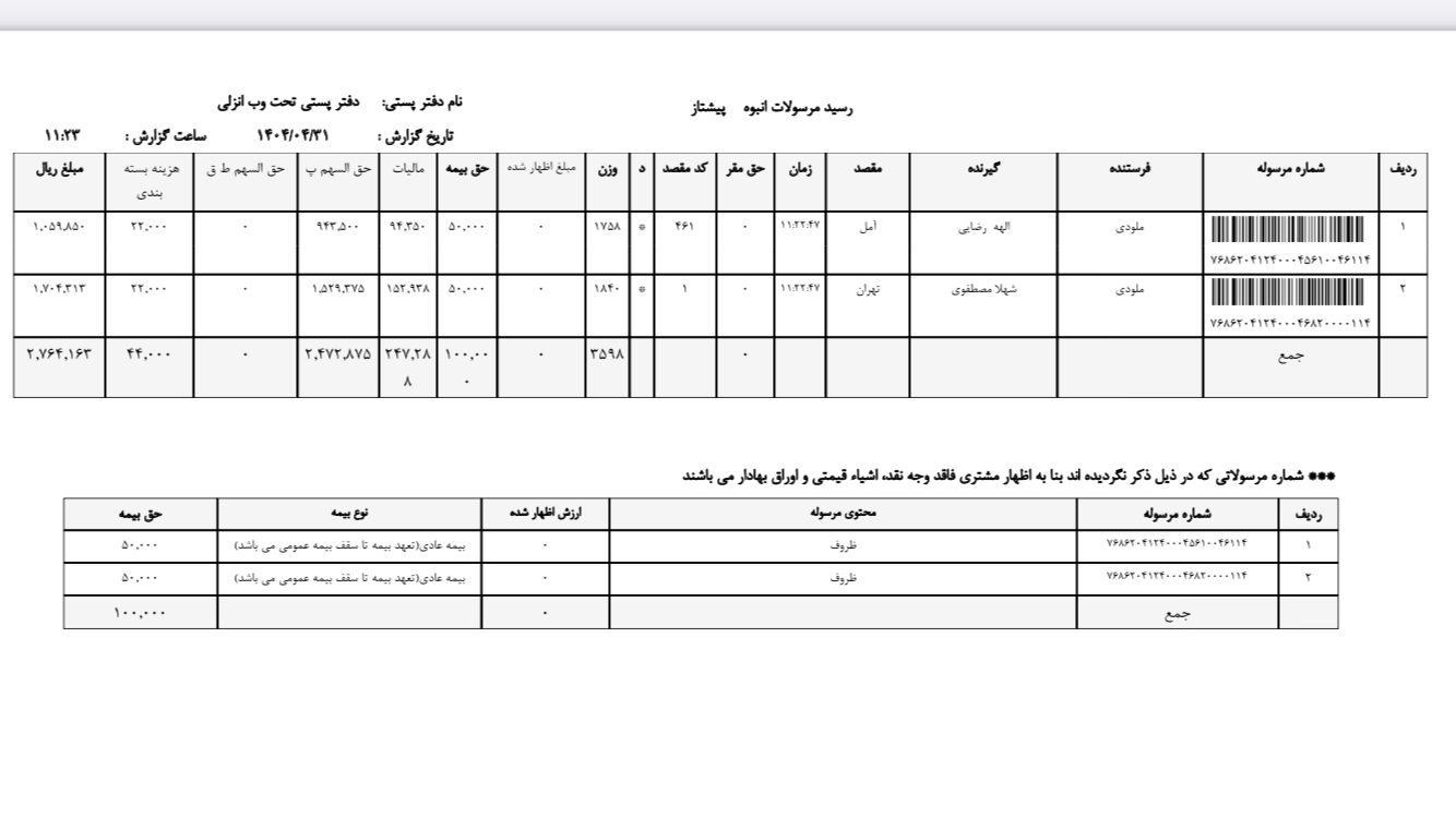 کدهای رهگیری ۳۱ تیر ۴۰۴