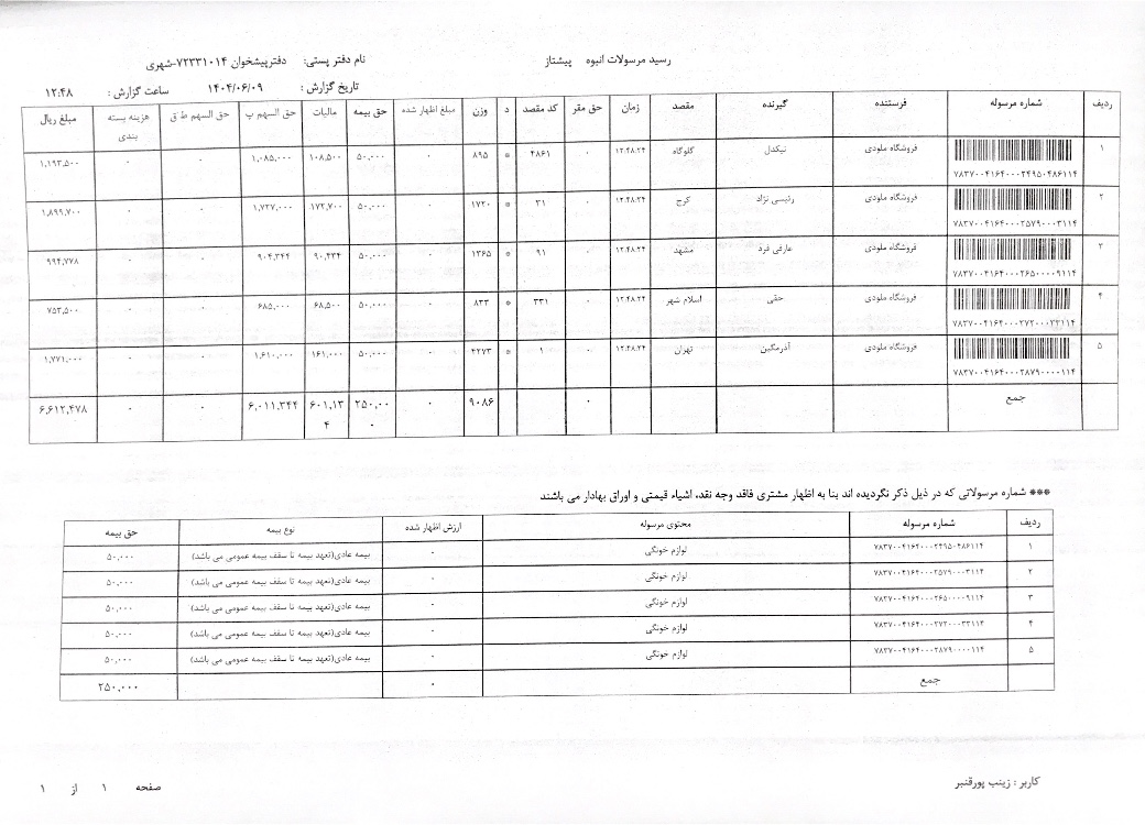 کدهای رهگیری ۹ شهریور ۴۰۴