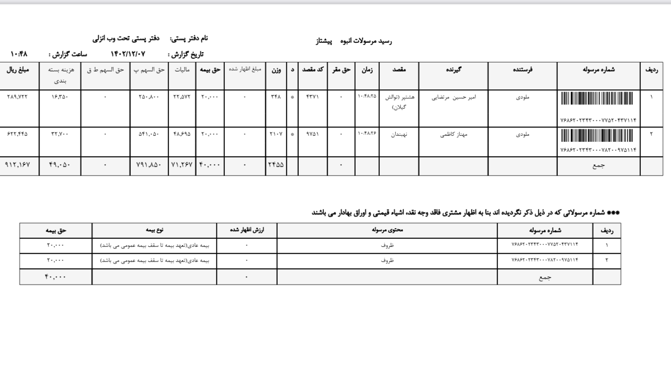 کدهای رهگیری ۷ اسفند ۱۴۰۲