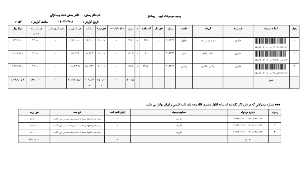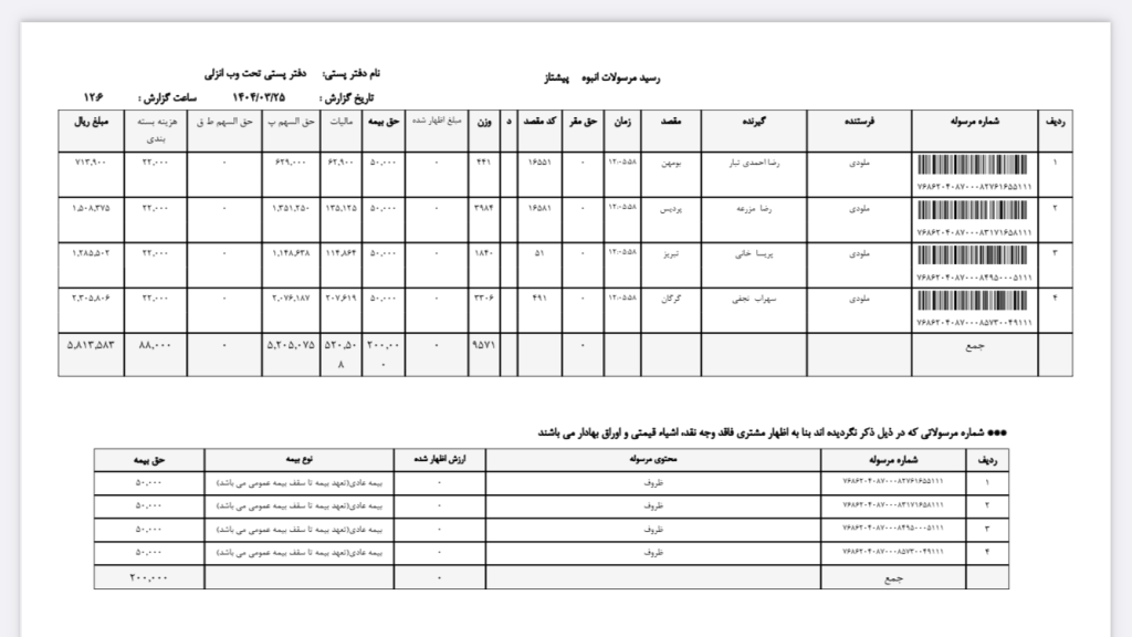۰۸ تیر کد های رهگیری کدهای رهگیری ۸ تیر ۴۰۴ ارسال شده توسط ادمین گالری ملودی انزلی تیر 8, 1404 0 توجه ارسالهای سایت به صورت روزانه انجام می گردد و کدهای رهگیری مربوط به مرسوله هایی که بصورتتکی ارس... ادامه مطلب