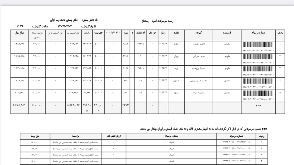 ۰۴ تیر کد های رهگیری کدهای رهگیری ۴ تیر ۴۰۴ ارسال شده توسط ادمین گالری ملودی انزلی تیر 4, 1404 0 توجه ارسالهای سایت به صورت روزانه انجام می گردد و کدهای رهگیری مربوط به مرسوله هایی که بصورتتکی ارس... ادامه مطلب