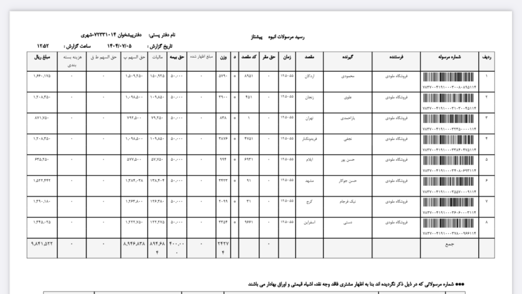 ۰۵ مهر کد های رهگیری کدهای رهگیری ۵ مهر ۴۰۴ ارسال شده توسط ادمین گالری ملودی انزلی مهر 5, 1404 0 ادامه مطلب
