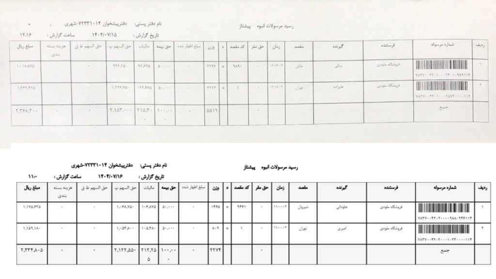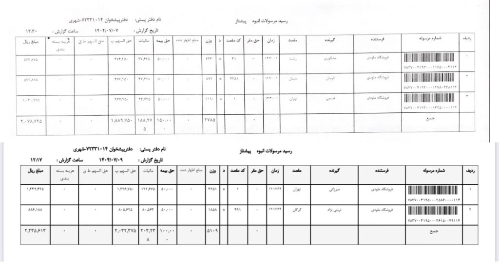 ۰۹ مهر کد های رهگیری کدهای رهگیری ۷ و ۹ مهر ۴۰۴ ارسال شده توسط ادمین گالری ملودی انزلی مهر 9, 1404 0 ادامه مطلب