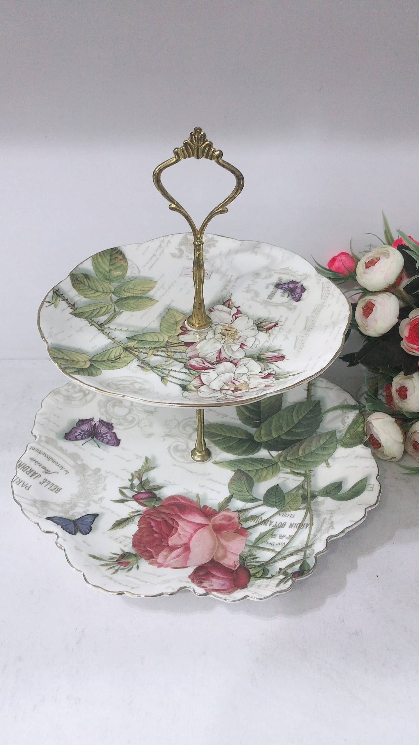 ظرف شیرینی دوطبقه لمونژ گل ملودی بسیار شیک و با کیفیت عالی